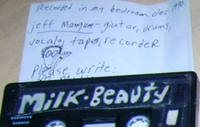 Comments: Before Jeff started using the name Neutral Milk Hotel, he made a few cassettes under the name Milk. These tapes were usually just one-offs, or perhaps he dubbed a few copies, but just homemade cassettes to share with friends. This tape is a compilation of songs and noises recorded from 1987 - 1990. Side A is from '87, '88, and '89, while the second side is all from '90. It has not circulated online, unfortunately. The tracklists and photo are courtesy of someone going by the pseudonym Alfred Hybrid, who was asked by Elephant 6 not to share the recordings. The only song on the tracklist recognizable to NMH fans seems to be an early version of "Rubby Bulbs". This tape did not come with a tracklist, so these titles are arrived at using contained words or best guesses. Alfred had this to say about the tape: "Of this hour of tape, there are a few absolutely wonderful songs that really stand out from the noise. Safety and Shield, Beautiful Eyes, Goodbye My Friend, In the Springtime are a few of them (again, guessing on titles)."